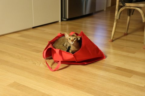 집안에 있는 모든 장바구니와 상자는 라떼 소유라고 해도 무리가 없네요.