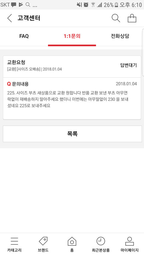 이번에는 양해문자나 전화없이 제가 주문한 사이즈가 아닌 다른 구두를 보냈기에