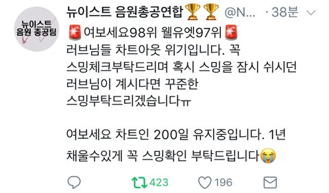 그러기 위해서는 우선 스밍 투표 해야겠지 ....???..