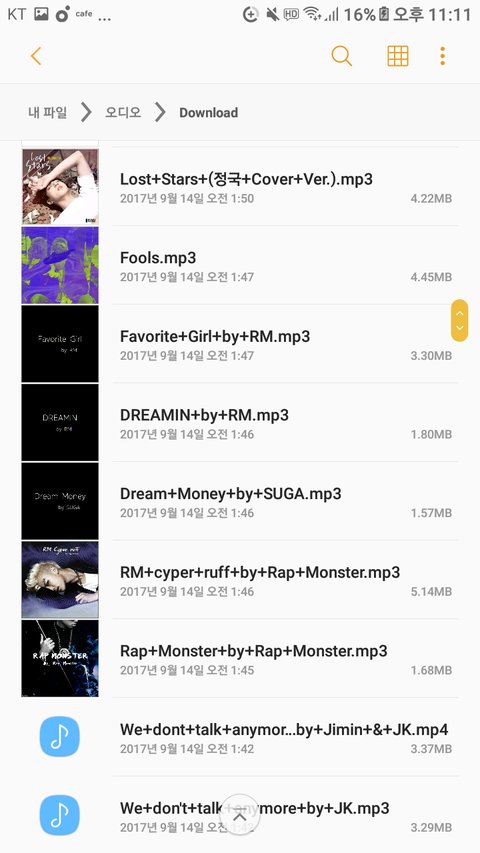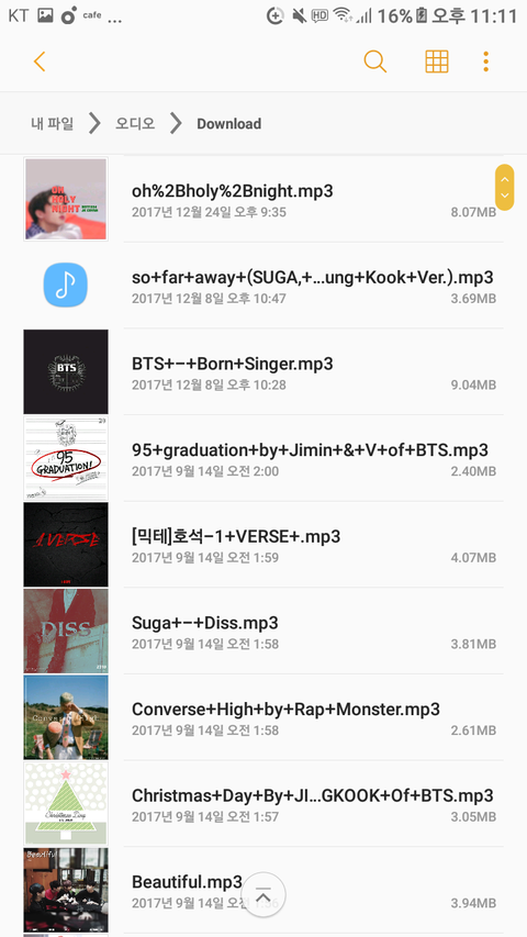 영상은 컴퓨터에있어서 폰에 음원이라도 인증. 음원다운날짜는 폰바꾼날짜라 최근인데 옛날음원 거의다있어ㅇㅇ