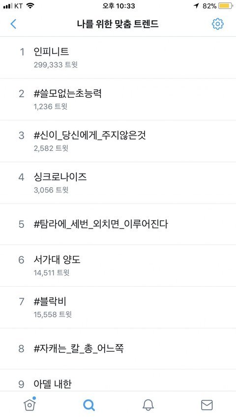 22만 트윗 방금 넘으시고 실트에 인피니트관련된거 5개씩은 어제부터 계속있었음