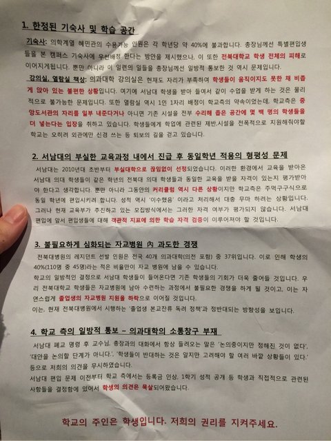 지금 첨부한 이미지는 오늘 구정문에서 시위를 진행한 의대생들이 작성한 글입니다.