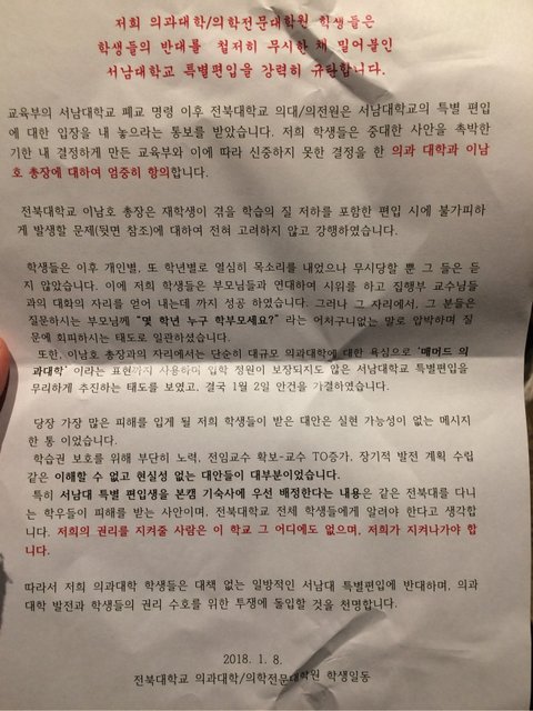 저는 전북대학교 휴학생이고, 급작스럽게 통보받은 서남대 특별편입에 대해 많은 분들이 아셨으면 하는 마음에서 글을 작성하게 되었습니다.
