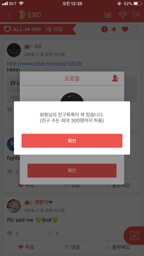 나 친구 282명인데 자꾸 회원님의 친구 목록이 가득 찼다고 뜸 왜이러는거임