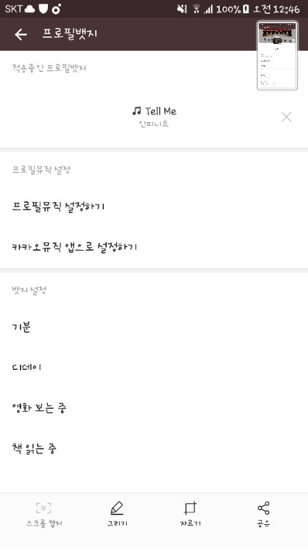인피니트 tell me라고 검색하고 설정하기 끝~~