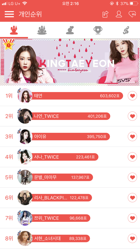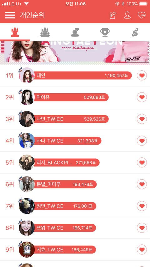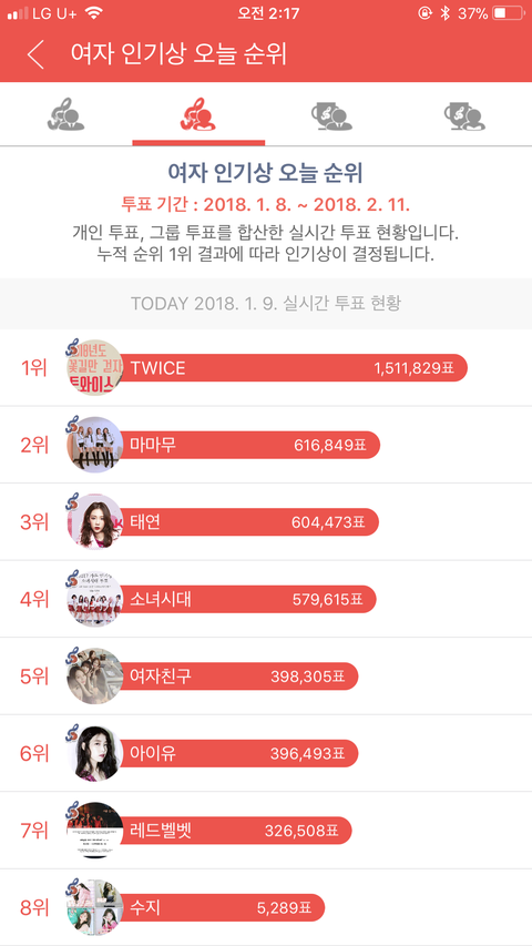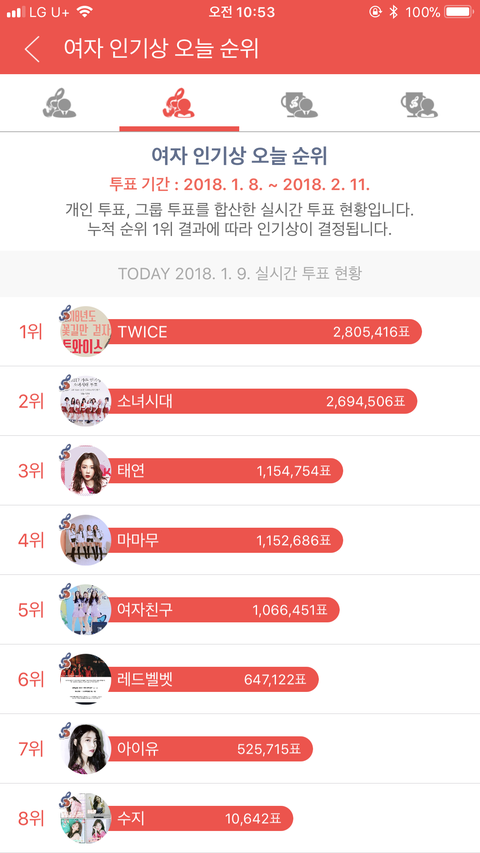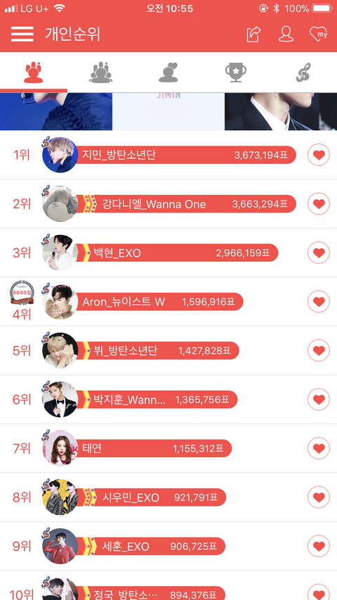 지금 여자 개인순위는 거의 넘사벽 1위고 남돌까지 합쳐도 6위임ㅋㅋㅋㅋㅋ