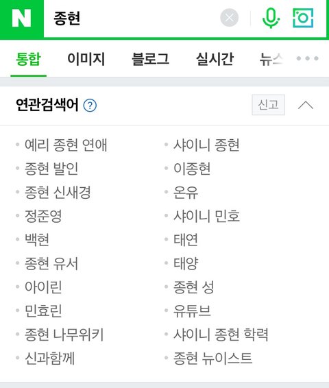 1. 종현에 대한 루머와 관련된 연관검색어 삭제