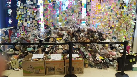 현재 아티움 1층과 5층에 임시로 팬들의 선물 (생전 좋아하던 젤리, 음료수 등의 작은 것들)과 편지, 꽃, 그리고 포스트잇을 두고 있어.