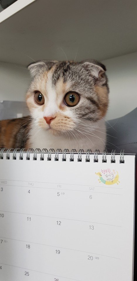 집사 달력뒤에 숨어서 댕댕이들 지켜보는중