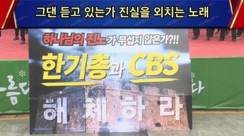 "한기총폐쇄, CBS 아웃"이 적힌 머리띠를 띠고 구호를 외쳤는데요.