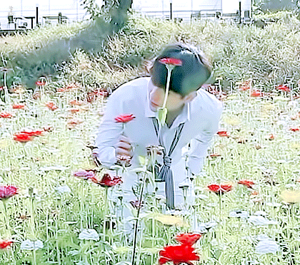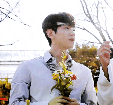 이렇게 어깨 넓은 남자가 꽃을 퍄~