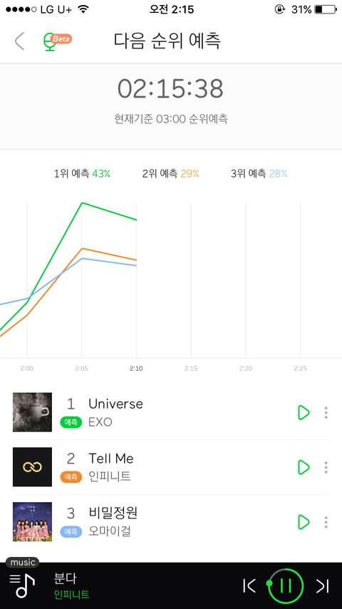 새벽에 예측보면 딱 팬들이 스밍돌려서 위에 찍고 바로 내려오넹 어쩔 수 없이 머글픽이 필요한가벼