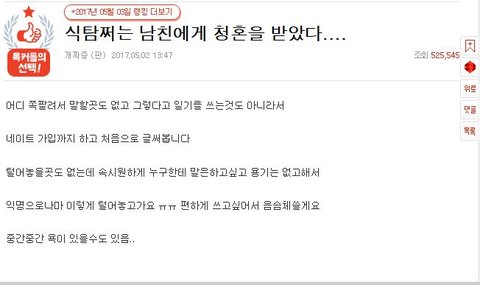 식탐이 쩌는 남친에게 청혼을 받았다..