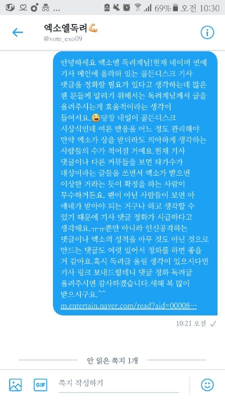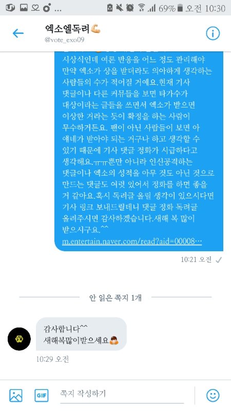엑소엘 독려한테 보낸 거 답 옴