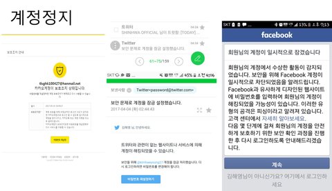 모든 계정들이 해킹되서 정지됐다고 날아온 증거들입니다.