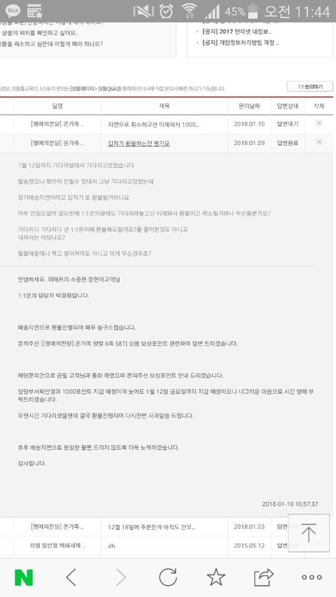 3일에 해를 넘겨도 안오길래 위메*에 1:1문의남김