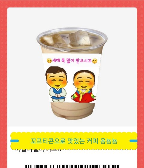 꼬프티콘에 한복입은 꼬랑이들이 떡하니 그려져 있어서 소심한 나는 알바생에게 내밀때 살짝 두근두근했다고 ㅋㅋㅋ