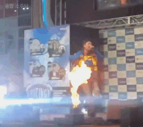무대장치에서 불 뿜어져나오는거 자세히 보삼
