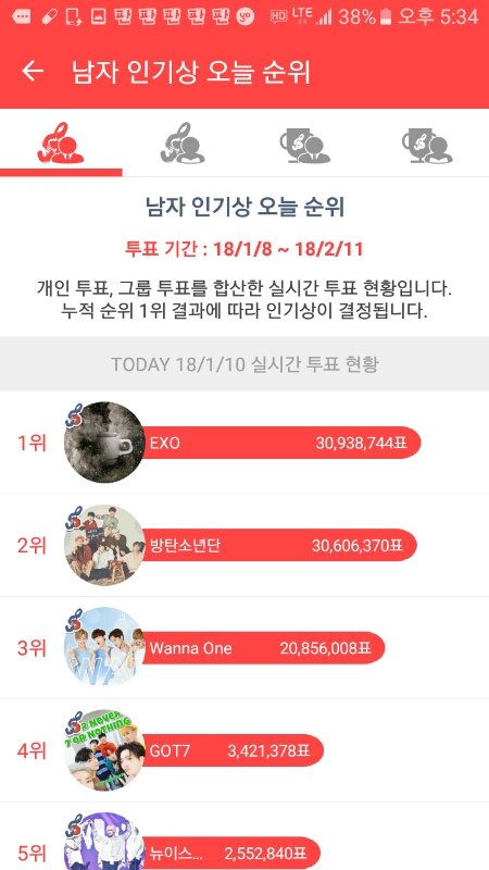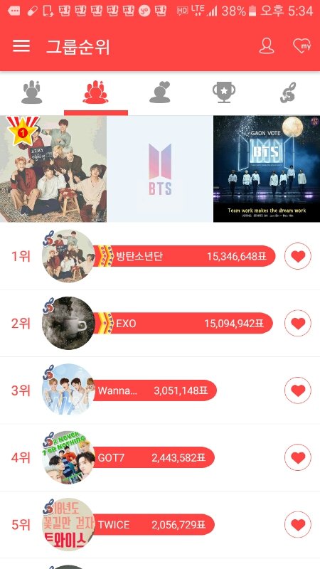 가온 인기상 받자 !! 플레이스토어에 최애돌 깔고 방탄이 투표해줘♥