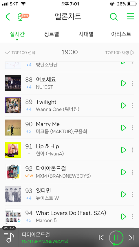 얘들아 드뎌 우리가 실시간차트100위안에 들었어 !!