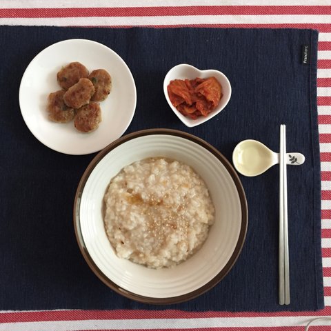 저는 숭늉없이 죽처럼 먹는 걸 좋아해요ㅎㅎ 배가 금방 꺼지는 게 단점ㅜㅜ (동그랑땡은 냉동이에요^^;)