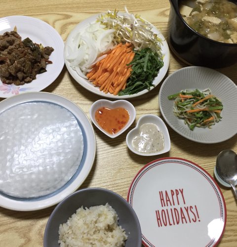 된장찌개, 숙주미나리무침, 월남쌈, 불고기