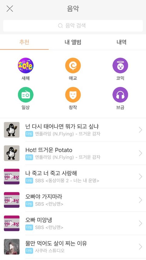 사진 말고 동영상을 누르니 유명한 더빙 목록이 뜨더라구요!!