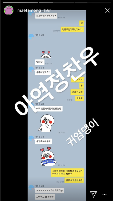 위너 이승훈군과 정찬우님 카톡내용이에욤 총총,,
