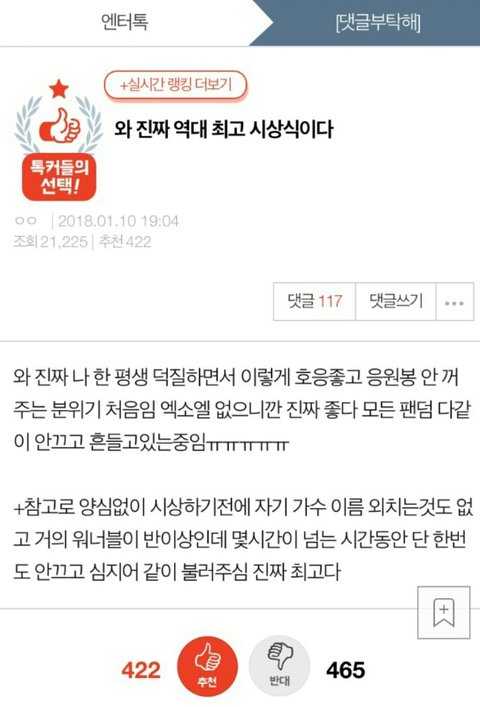 엑소엘없어서좋다 엑소가받으면 부정시상이다 ㅇㅈㄹ 진짜 너네 한 번이라도 엑소랑 엑소엘한테 관대한 적은 있었냐 씨1발 개눈물나 이럴거면 멜뮤때 왜 우리 쳐팼어