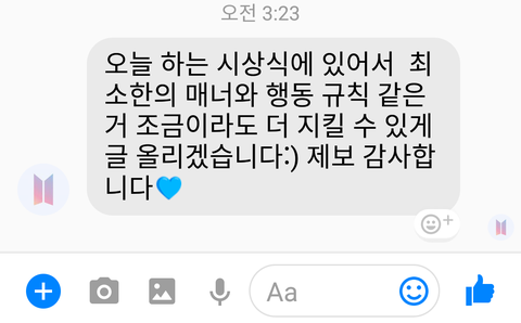팔로워 19만명 정도 되는 방탄 관련 게시물 올리시는 분께 페1메 해서 답장 받은거! 조금이라도 도움 되겠지?ㅠㅠ