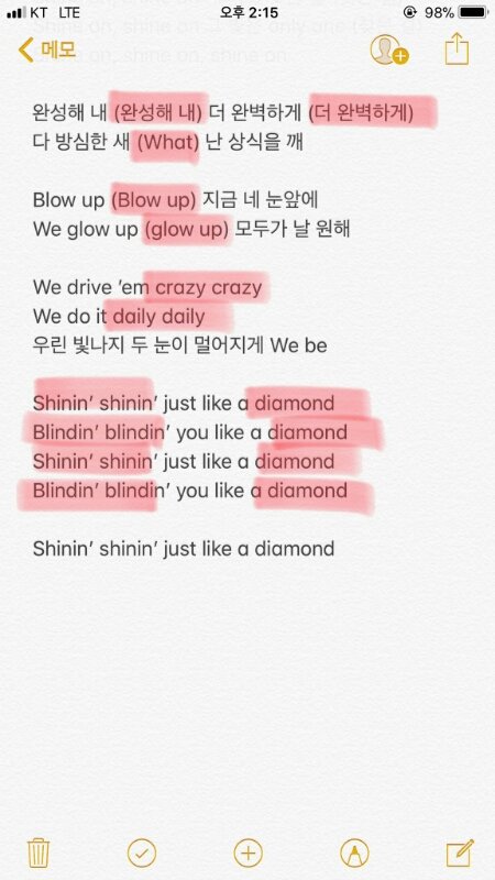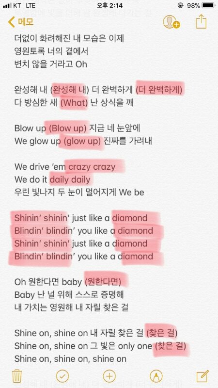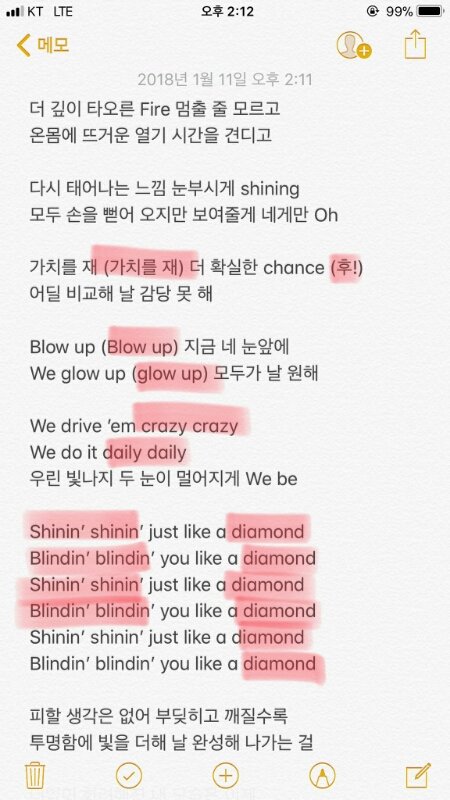 다이아몬드 응원법 샤이닝 샤이닝 다이아몬드 부분도 외치자고 하는거 같음 안하는거 보다는 하는게 나은거 같으니까 현장애들 참고해주셈