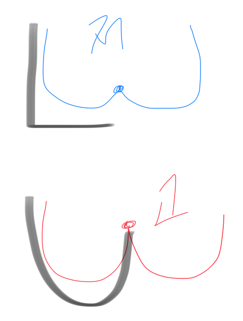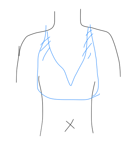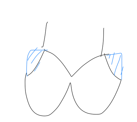 혹시 “75A를 입었는데, 윗부분이 떠요,, 근데 이 브랜드는 75A가 제일 작은 사이즈래요” 하시는 분이 있을 수도 있음. 이럴 경우에는 같은 75A여도 패드(뽕)가 많이 든 제품을 입으면 됨! 그러면 진짜로 안뜸. 패드가 많아서 오히려 더 붕뜰거라고 생각하시는 분들이 많은데 절대 아님 한번 속는셈치고 피팅해보세요,, 아니면 70이 나오는 다른 브랜드를 찾거나,,아래 그림처럼 위에까지 잡아주는 속옷을 사면됨! 그림을 발로그렸는데, 그 위에까지 올라오는 속옷을 입으면 윗 가슴을 잡아줘서 브라가 남는게 덜함.
