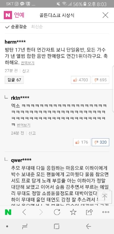 에휴...당분간 댓글이고 뭐고 안 봐야지