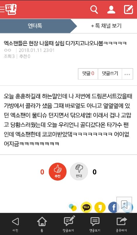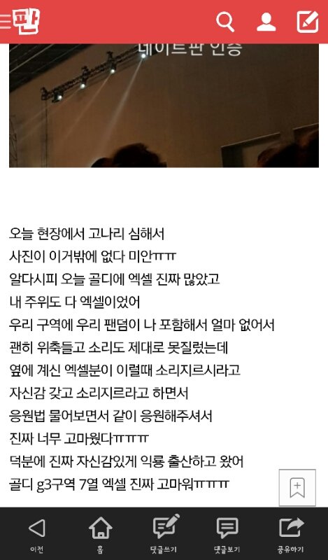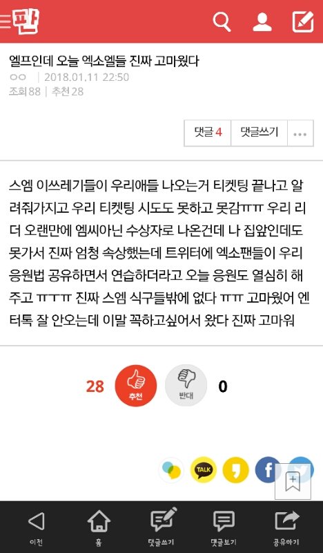 솔직히 팬덤이 큰 만큼 무개념도 많아서 안좋게 본적 있었는데 뭐랄까 점점 성숙해지는 느낌이야 앞으로도 예의있는 엑소엘, 팬덤문화 기대할게!