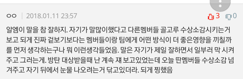달방에서도 누구 한번 몰이 당하고 있으면 남주니가 혼자 나서서 그 사람 편들어 줄때도 은근 많음 ㅎㅎ