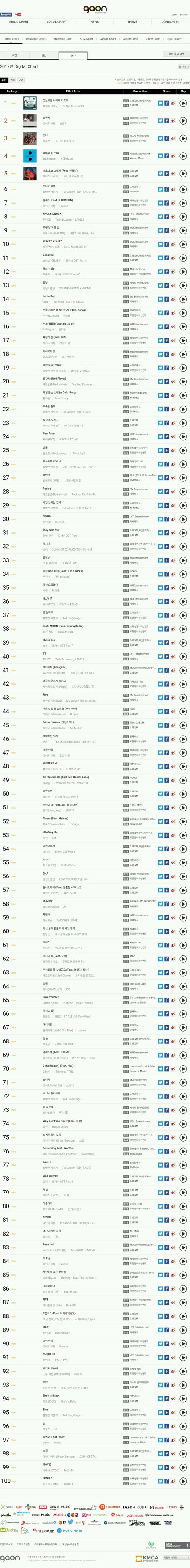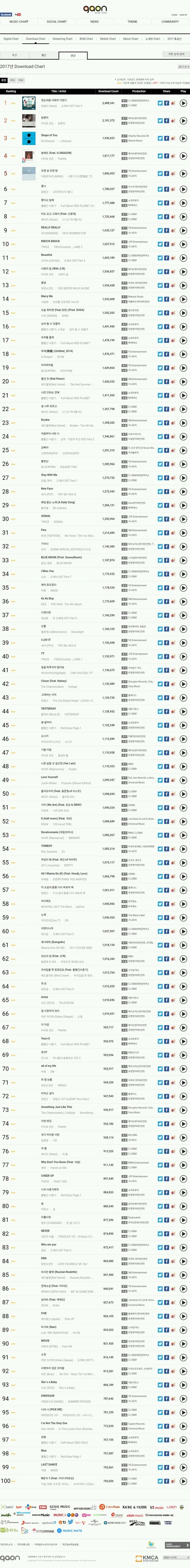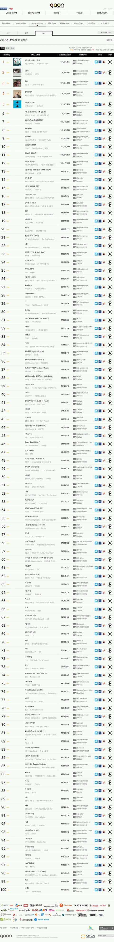 순서대로 스트리밍, 다운로드, 디종 연간순위임