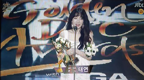 당당하게 상 두 개 꽃다발 두 개 들고 소녀시대 태연입니다 ㄷㄷ... 데뷔 12년차 걸그룹이 어째 저러냐