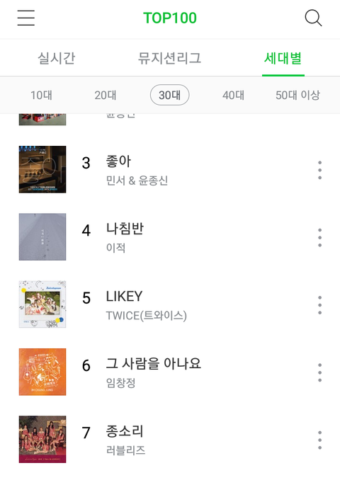 30대 남자들이 많이 들은 노래 순인데 종소리 7위야ㅋㅋㅋ