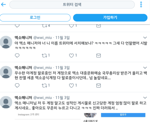 와 엑소안티 트윗에서 매니저까지 까고 다녀?