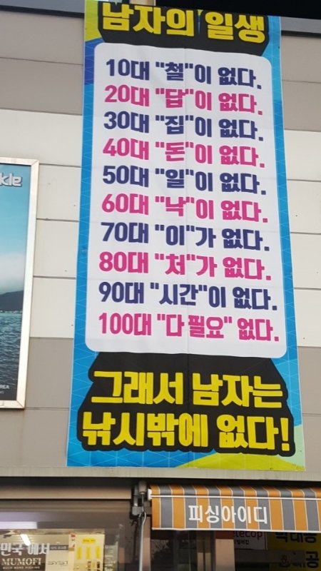 운동하러 가다가 옆집 낚시방에 걸려있던 글이예요