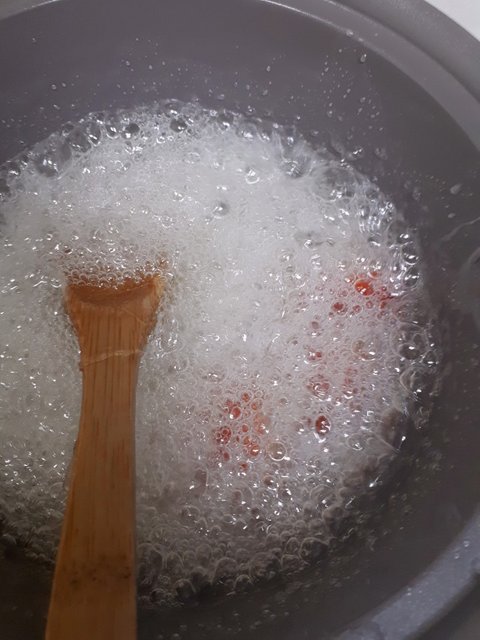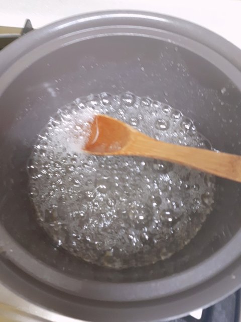 처음엔 보글보글 끓다가 시간 갈 수록 기포 커지면서 부글부글? 부룽부룽? 끓을 거야! 그때 약약약약불로 줄여!! 이제 시럽 준비는 끝!