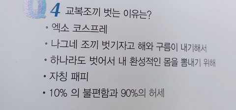 남학생들한테 왜 교복조끼 벗고다니는지 물어본건데ㅋㅋㅋㄲㅋㅋㅋㅋㅋ사소한거라도 언급있어서 기분좋았다ㅎㅎ