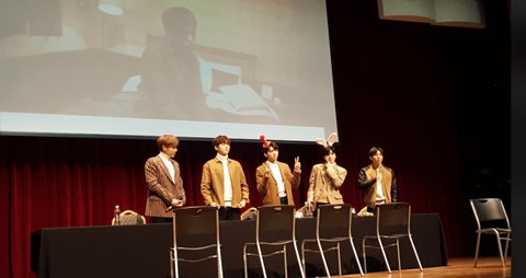 규-묭-현-쫑-동 순서였는데,규 염색한거 가까이서 직접 보니까 진짜 장난아니게 찰떡이고 잘생기고 난리도 아니더라고. 그래서 '은근 밝은색으로 염색하는거 잘어울린다고 빨강 머리도 그렇고 지금 머리색깔도 진짜 이쁘다고' 했더니 '고맙습니다^^ 근데 은.근. 은 뭐죠??^^' 그 특유의 츤츤 말투로ㅋㅋ 그래서 아니 그냥 잘어울린다구요~ 하고 제일 중요한!! '코스프레 뭐할지 생각해봤냐고' 물어봤더니 되게 진지하게 '아 제가 그걸 생각해봤는데 그 공약을 제가 건게 아닌데 저도 꼭 해야할까요??' 이러길래 폭풍 끄덕이면서 '꼭!! 해야한다고!!' 그랬더니 꼭 해야하는걸까.. 생각 안해봤는데.. 체념한 목소리로 말하더라ㅋㅋ 좀 더 자세한 답변을 들을 수 있었는데 매니저님께서 넘어가라고 하셔가지고 듣지 못했다..ㅠㅠ