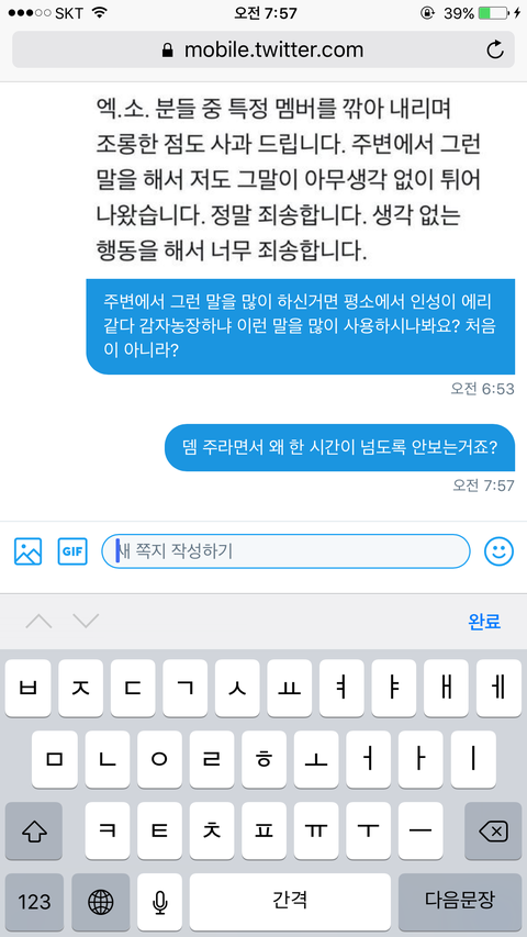 아니 짹에서 에리화 ㅇㅈㄹ 떤 애들은 왜 가만히 있냐