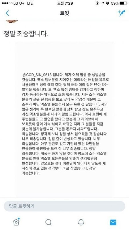 사과문올렸잖아 당사자가 근데 왜이렇게 사과하는거임?