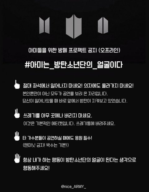 우리 제발 항상 기억하자 제발 아미는 방탄소년단의 얼굴이다라고! 팬덤이 커지면 커질수록 문제되는 절대수는 많아질 수 있지만 그래도 우리 노력하면서 주위 이삐가 잘못된 행동 하면 지적할 수 있는 멋진 팬덤 되자