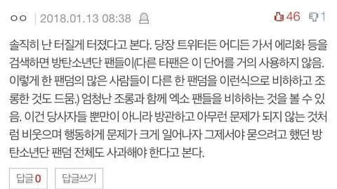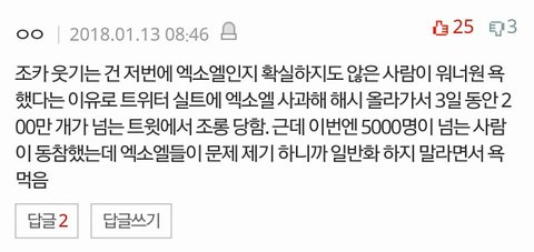 얼마전 짬밥사건때 엑소엘인지 타팬인지