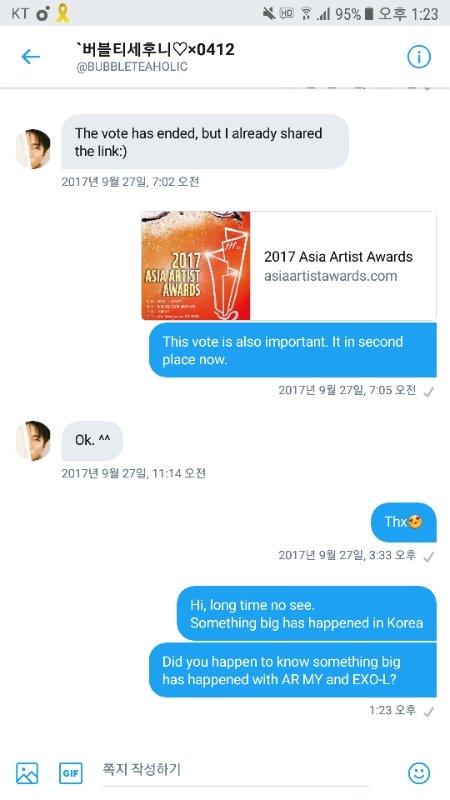 중궈랑 컨택 ㅇㅇ 나 중국녀인데 기억할 지 모르겠다 무한퉆 할 때 중궈에 뎀 보내던 애야 이 분 421K 세훈팬이고 무슨일 있우면 뎀보내라규 하셬ㅅ던 분이아 우선은 보냈어 ㄱㄷ려