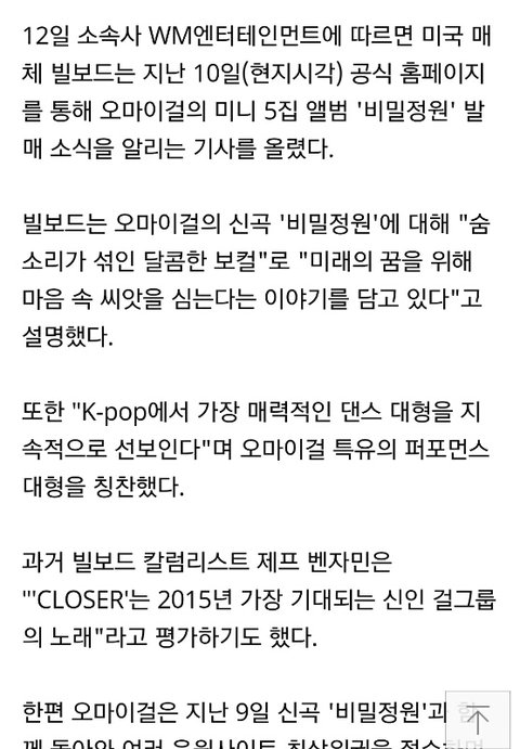 오마이걸 빌보드에서 퍼포먼스 예쁘다고 극찬 받고 예전엔 이미 빌보드 칼럼니스트한테 클로저로 확실히 눈도장 찍은 적 있음 진짜 이대로 쭉 잘 됐으면 좋겠음 그리고 완쾌해서 오늘 무대 같이 선다는데 다치지 말고 조심히 활동 마무리했으면 좋겠음 그리고 1위 꼭 했으면 좋겠음!