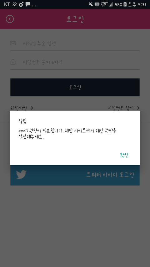 내가 트위터로 로그인 하려는데 이렇게 뜨거든?